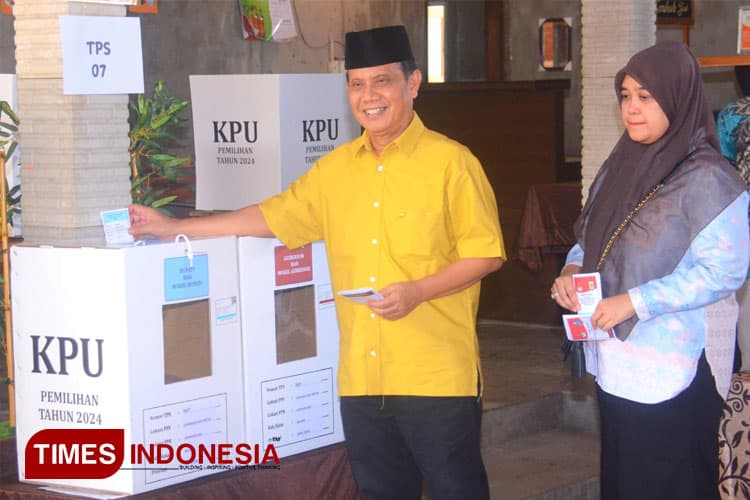 TIMES Tuban/Calon Bupati Malang nomor urut 2, Gunawan HS, saat memberikan hak suara dalam pilkada 2024, di TPS 07, Desa Gondanglegi Wetan, Kabupaten Malang, Kamis 27/11/2024. (FOTO: Adhitya Hendra/TIMES Indonesia)