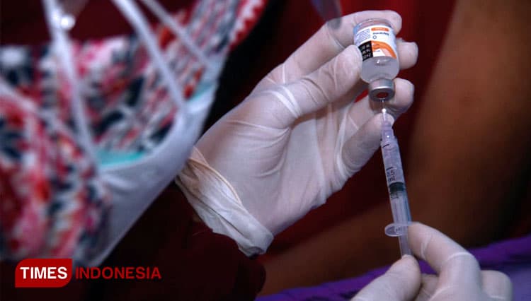 Salah satu tenaga kesehatan saat mengisi dosis vaksin untuk disuntikkan. (FOTO: Adhitya Hendra/TIMES Indonesia)
